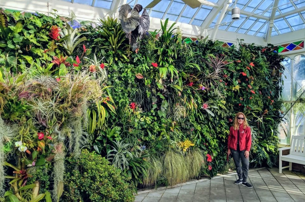 This beautiful living wall has been growing and evolving since 2014. Cared for every Monday by Conservatory volunteers and staff it has been modified and manicured to perfection. The Florafelt Pocket Panels living wall system was installed by Chris Bribach of Plants On Walls. Special thanks to Mario Vega and Steph Kantorski who keep it so beautiful and interesting.